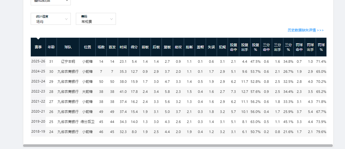 但本赛季来到辽宁男篮,14次出场后,姜宇星场均只有5.4分2.7篮板,而且有四场比赛得分挂零。该数据和表现相比他在吉林队时断崖式下滑。